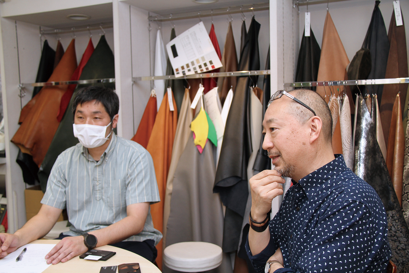 昔から「世の中にない革を作ろう」という想いで営業の企画部から色んな提案を持ってくるような動きがあるのですが、ある展示会に行った時に草木染めの生地を扱われている会社さんがありました。話を聞いてるうちに革にも応用ができるのではないかと思い、そこからこの企画が始まりました。