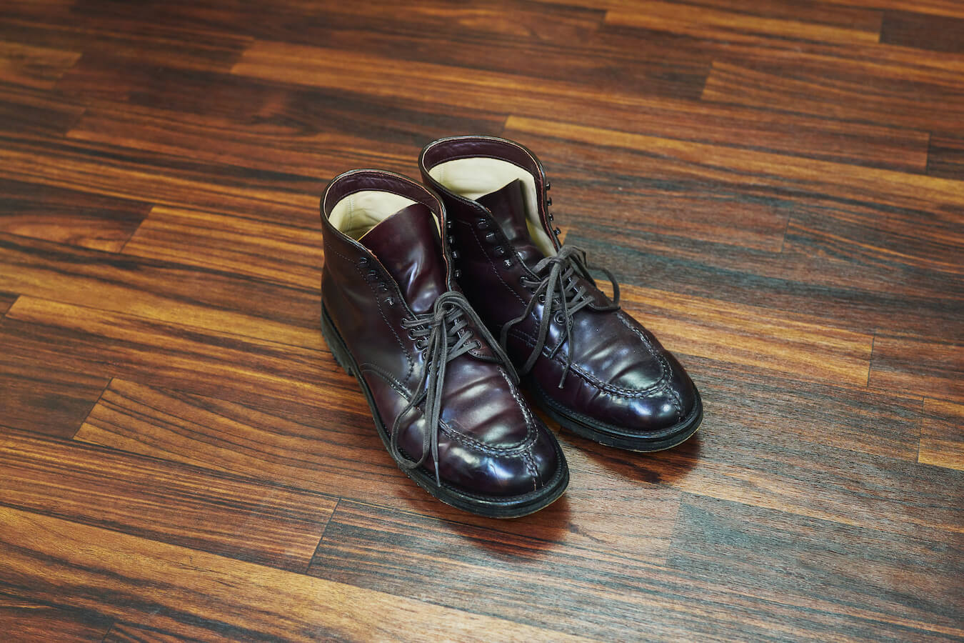 最後は『オールデン』というメーカーのコードバンの靴。僕が初めて買った高級靴ですね。『ドクターマーチン』とかもありますけど、今日はカッコつけて高級なのを持ってきました。