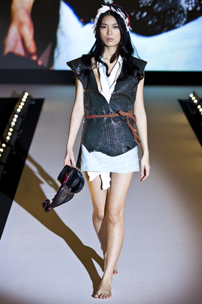 レザーマテリアルをモデルが立体的に纏う新感覚ショー