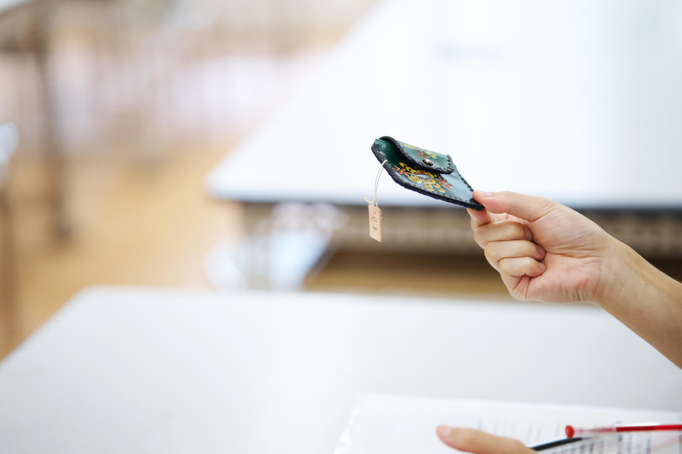講師である私たちがいちばん意識しているのは、「レザークラフトの楽しさを知ってもらう」ということ。初日の授業で小銭入れをつくり、その日に持って帰れます。生徒さんが楽しく作業している姿や、できあがったものを見つめる顔を見ると私たちも嬉しく感じますね。