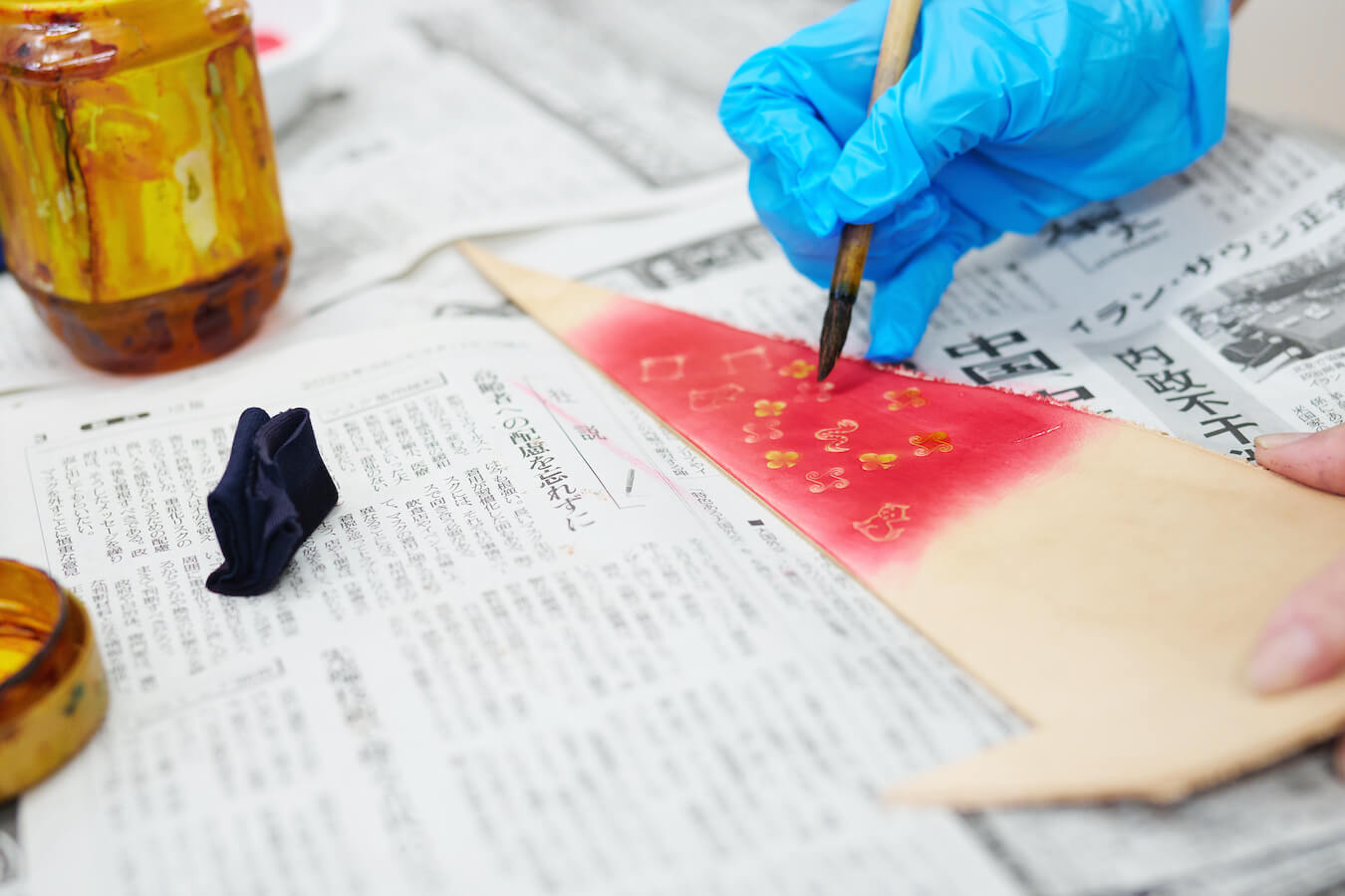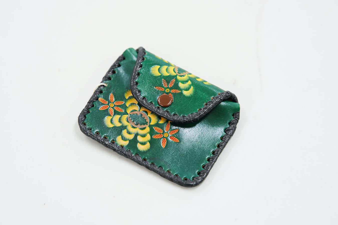 初日に完成させて持って帰れる小銭入れ。刻印を施し、染色することで、華やかに仕上がります。