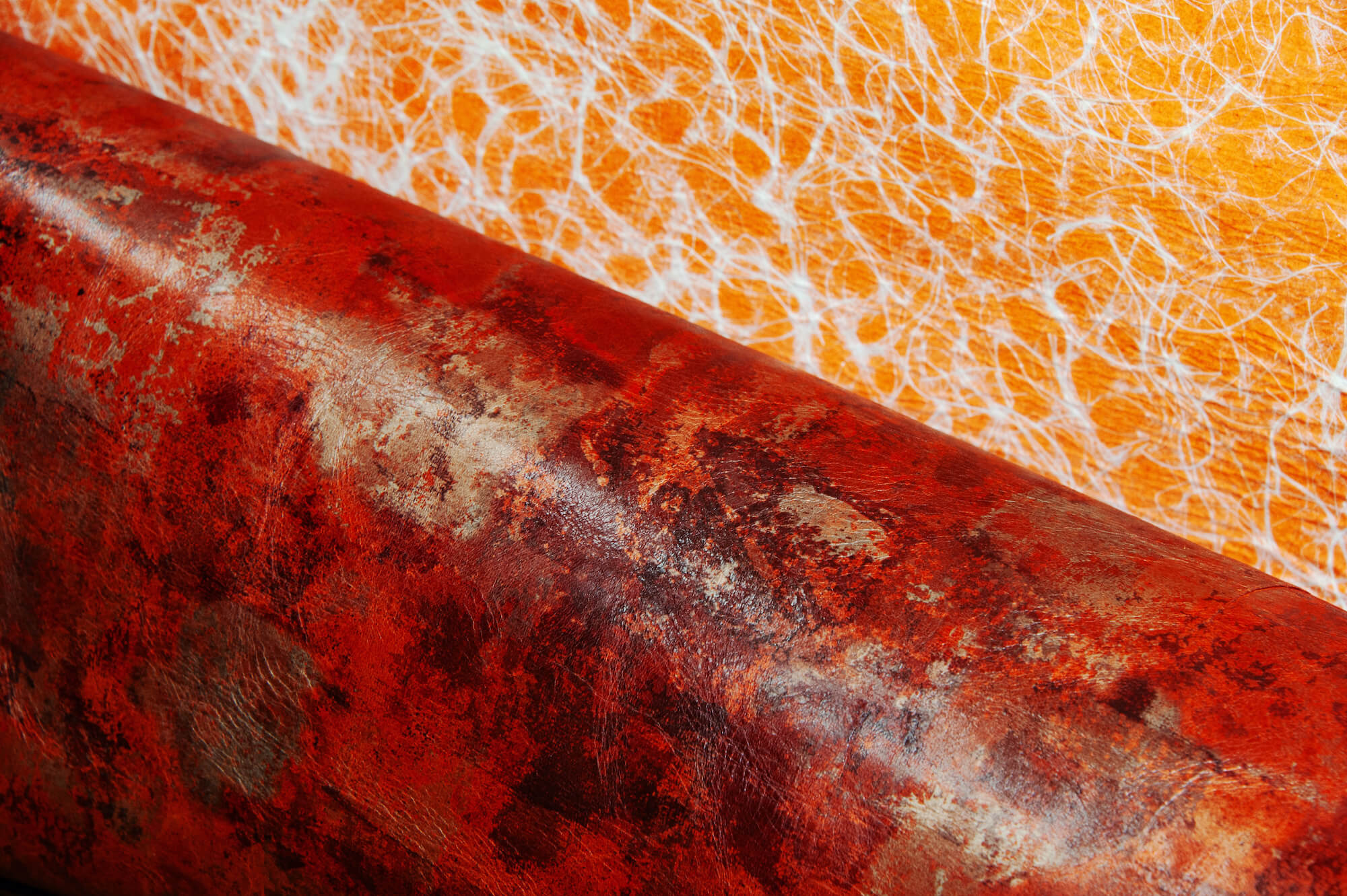 | コメント | 和紙とイタリアのペイント加工を用いた、洗練された風合いの皮革です。和紙の繊維が柔らかさと耐久性をもたらし、ペイント柄は美しい色彩と光沢を与えます。この加工により、伝統と革新が融合したユニークな素材が生まれました。 |