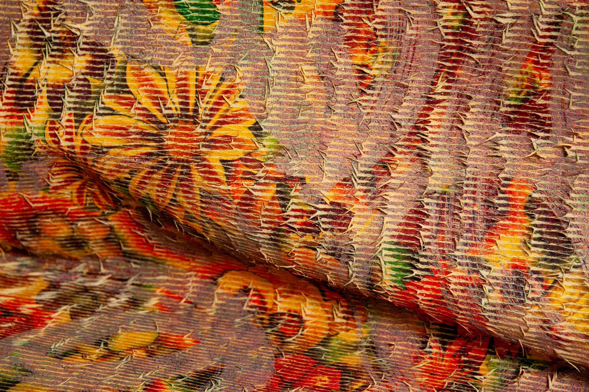 | コメント | 紅葉の湖東三山の木々が紅く染まる秋景色をイメージしてつくった。素材は地場の豚革を用い、日本では当社しかできない加工で紅葉を表現し立体感を持たせた。バッグ等の部分使いに面白いと思う。注文は一枚でもお受けする。色を変えて他の季節にも挑戦したい。 |