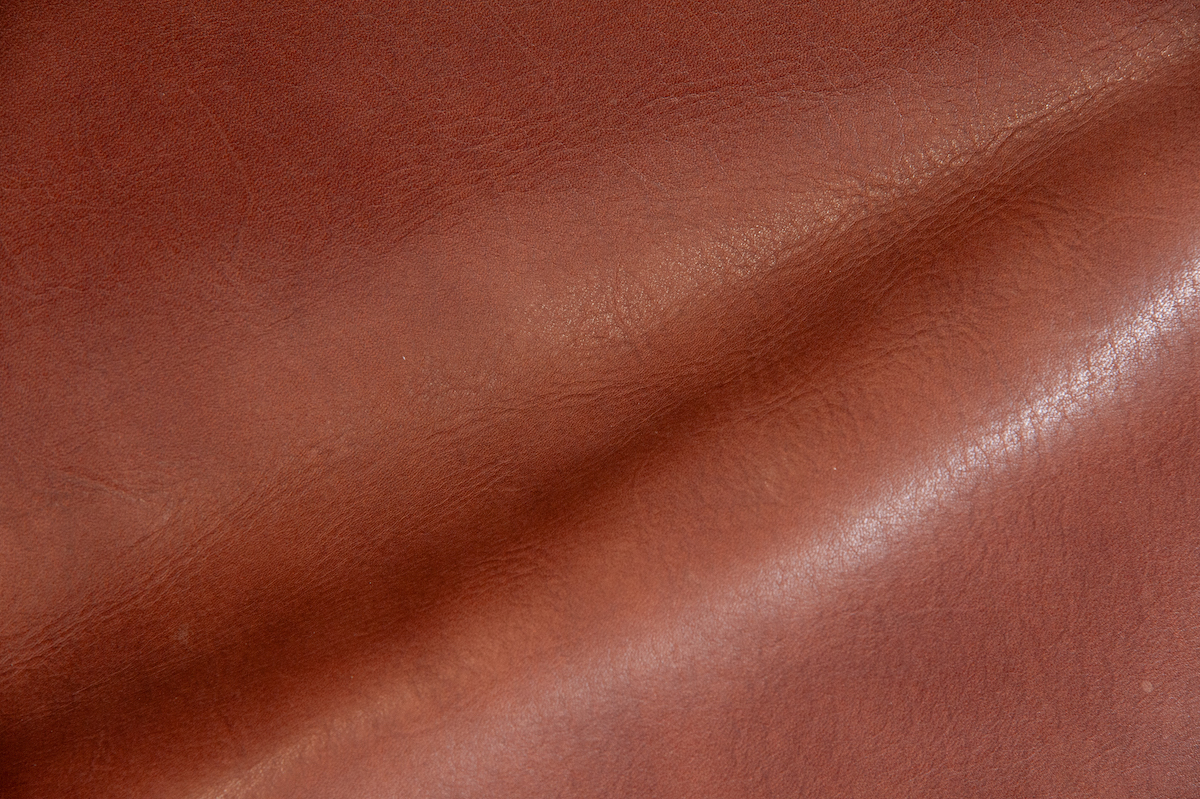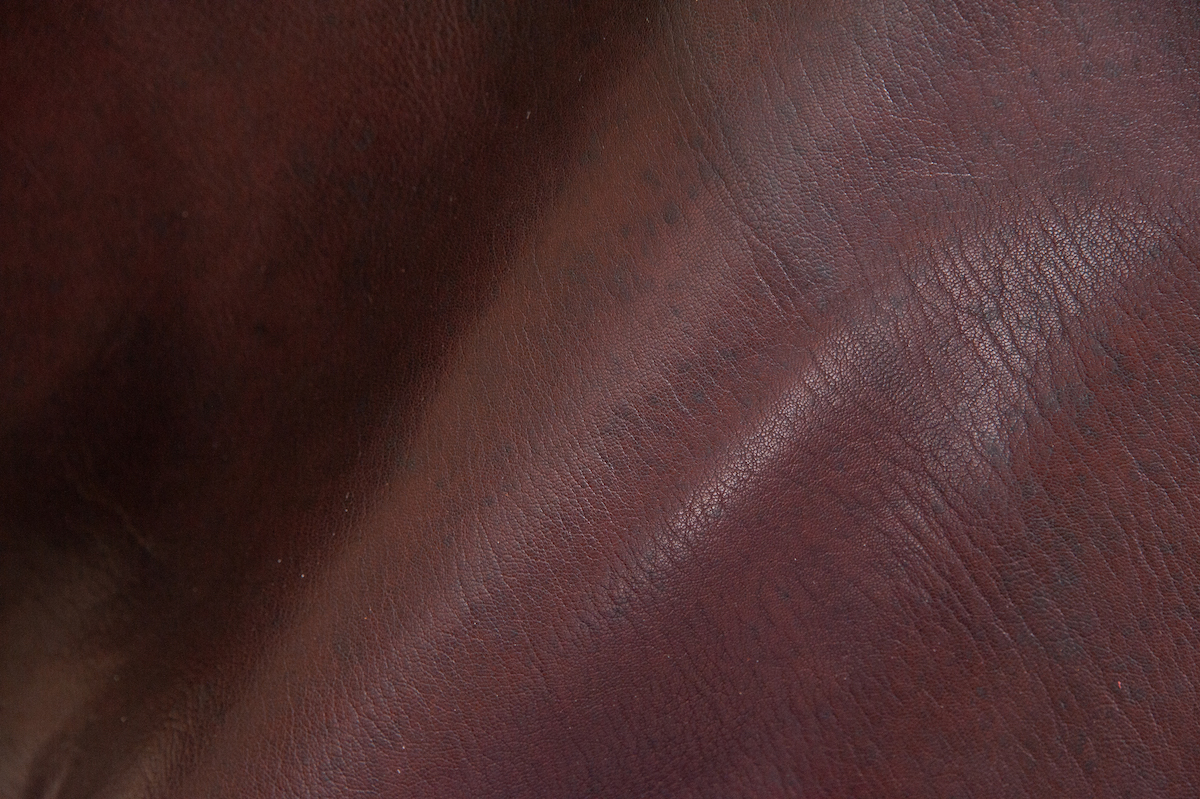 | コメント | 空打ち加工で柔らかくほぐした後、銀面(表面)を軽く擦り仕上げている厚口のヌメ革です。今回は経年変化後の雰囲気を分かりやすく表すため、半面にアイロンをあてています。質感の変化をお確かめ下さい。 |