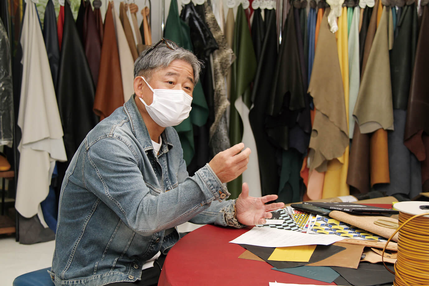 自社製品の関係上、デザイナーやパタンナーの方々とお話しする機会が多いです。デザイナーの方と接するのは問屋として珍しいことではありませんが、パタンナーの方は私たち問屋と接することがあまりないので、色々と刺激を受けることが多いですね。そういった製作に関わる方々と「今度こういったモノを作りたいね……」などと雑談をして、お互いにガス抜きができれば、いいと思っています。今に限らずですが、このような関係性を築くことが、革作りでも、モノづくりでも大切なことだと、昔から感じていました。モノづくりはチームワークが大事なので、結局のところ人付き合いなんですよ。どの業界にも言えることだと思いますが、このようなチームワークが最近は疎かになっているのではないかなと思います。今の時代だからこそ、人付き合いを大切にして、チームの構築をすることが業務の効率化やクオリティの向上にもつながると考えています。