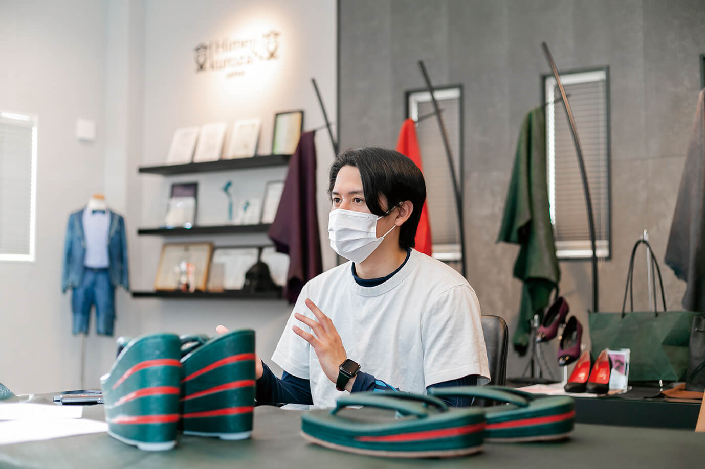 日本古来の伝統技法である「鞣し」と「漆塗り」の技術を融合させた姫路黒桟革。世界最高峰といわれるパリのファッション見本市「プルミエール・ヴィジョン」が主催するPVアワードのレザー部門で「ハンドル賞」を受賞した兵庫県姫路市の坂本商店。今回は、代表坂本弘氏のご子息が手掛けられた『黒桟革 型押しグリーン』について、同社の坂本悠氏にお話を伺いました。