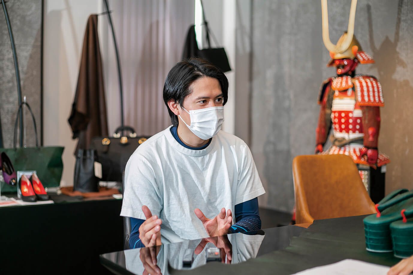 日本古来の伝統技法である「鞣し」と「漆塗り」の技術を融合させた姫路黒桟革。世界最高峰といわれるパリのファッション見本市「プルミエール・ヴィジョン」が主催するPVアワードのレザー部門で「ハンドル賞」を受賞した兵庫県姫路市の坂本商店。今回は、代表坂本弘氏のご子息が手掛けられた『黒桟革 型押しグリーン』について、同社の坂本悠氏にお話を伺いました。