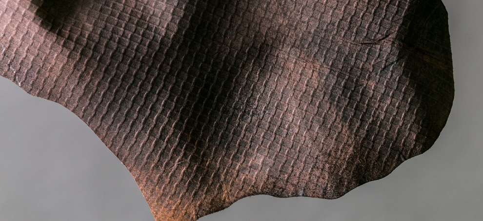 | コメント | 北米のステアを使用。クローム鞣しのソフトレザーに、手作業で柄をつけています。伸縮性を出し、表情に奥行きを見せてニュアンスを出しています。品名をアネモネと名付け、花言葉「真実」、「希望」、「期待」をこの革に託し、製作しました。 |