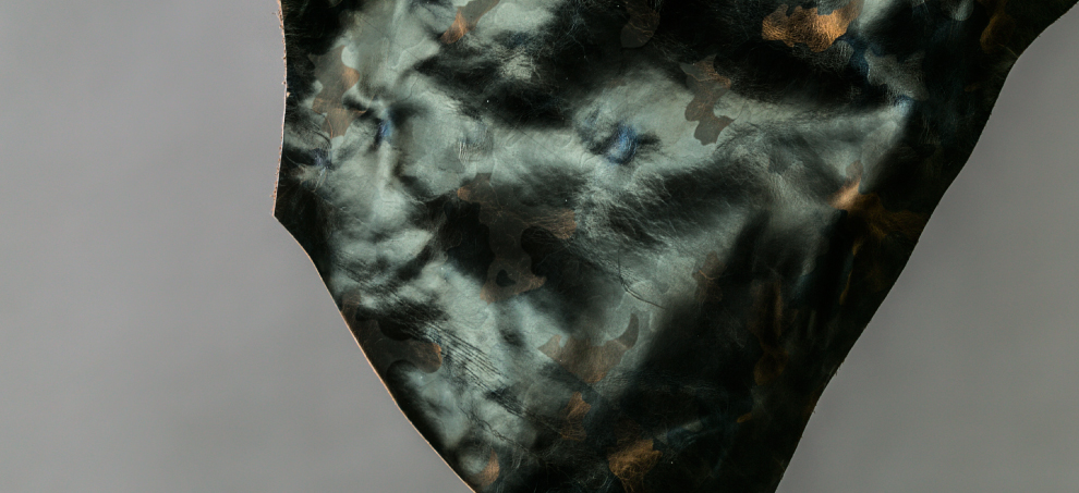 | コメント | 東京産の豚革に、抜染と絞り染めを合わせた「和のハイブリッド染め」を施しました。それぞれの染め技法を単独で行うよりも奥行き感があり、深みのある表現を実現させました。洗いざらした素上げな風合いが、質の高さを醸し出しています。 |