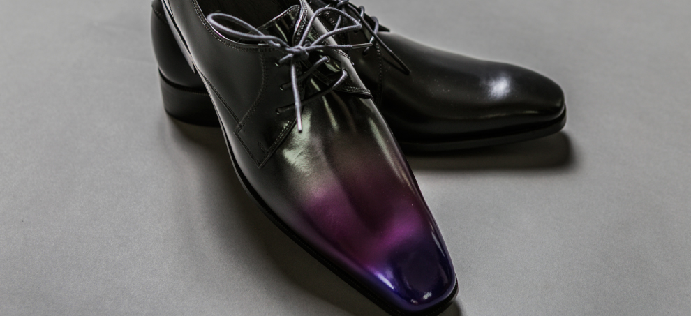 | コメント | 特殊メタリックの深みのある光輝感と水性仕上剤を用いた独特の艶感、シャドウによるグラデーションで靴にボリューム感を与えています。仕上剤にしかできない立体感のある独創的な仕上げを行いました。 |