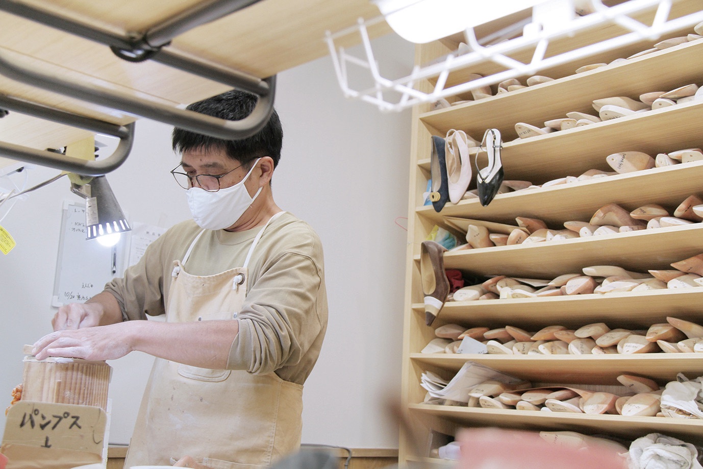 ラスト制作は、なんと言っても靴づくりの基本となりますので、かなり早い時期から携わっておりました。ラストに関してはモデル(原型)を削るだけでなく、栃木県の方にある自社工場で生産しています。ラストモデルは、モデリストと呼ばれる職人さんの手によって製作されているのですが、弊社では4名のモデリストを靴生産の拠点である神戸と浅草に2名ずつ滞在させていますので、お客様と密に話し合えることで提案力に一層深みを持たせることができます。また、弊社で製作しているプラスチック製のラストは、始めた当初から再生材料を使っております。一度、販売したラストもファッションの流行とともにスタイルが古くなっていきますので、そうした古いスタイルのラストを回収・粉砕し、一度〝再生チップ〞と呼ばれる状態にします。次に再生チップから〝再生ペレット〞と呼ばれるプラスチックの粒のような状態に形成し、そこに〝ヴァージンペレット〞を一定の割合で混合して、新しいスタイルのラストが生産されます。このように昔から環境に配慮した取り組みを行なっていたこともあり、今年、栃木のSDGs認定会社として承認を受けております。