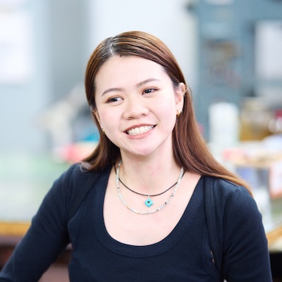 私はマレーシア出身で、日本に来て3年目です。高校まではマレーシアの学校に通って、そこから1年間、日本語を学んだ後に来日しました。日本の別の専門学校でファッション・ビジネスを学び、今は文化服装学院のバッグデザイン科にいます。
