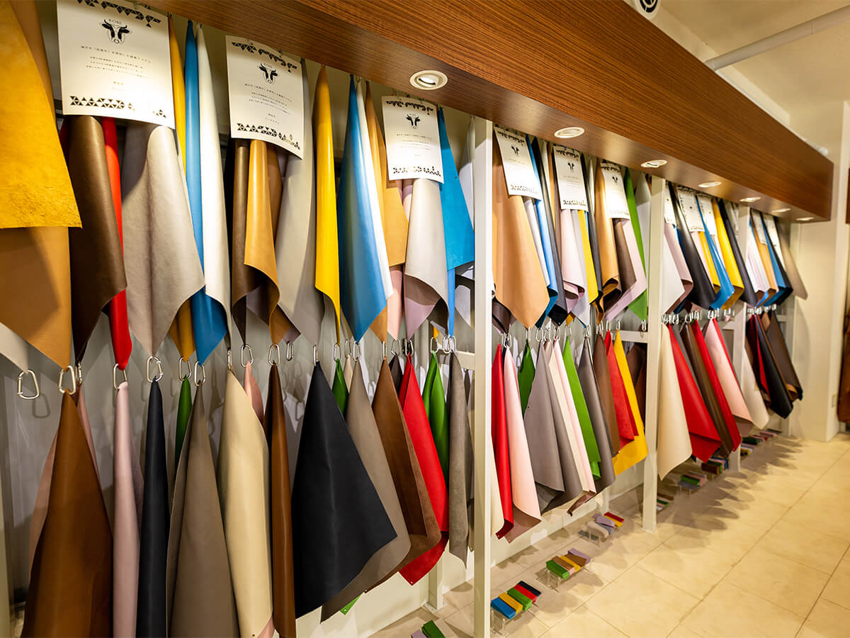 国内外の天然皮革を、バランスよく展開する相川商事(株)。自社工場を構えることで、販売のみならず、鞣しや加工までも手がけているのが特徴です。また、平成14年には、革の本場であるイタリアに支店を設立。それにより、伝統の技や最先端のトレンドを取り入れられるだけでなく、現地での検品や、タンナーと直接の対話が可能となり、より円滑な仕入れが実現しています。本場での取引の中で得た知識を、自社生産の革の開発へと活かすことで、唯一無二の存在へと成長を遂げているのです。