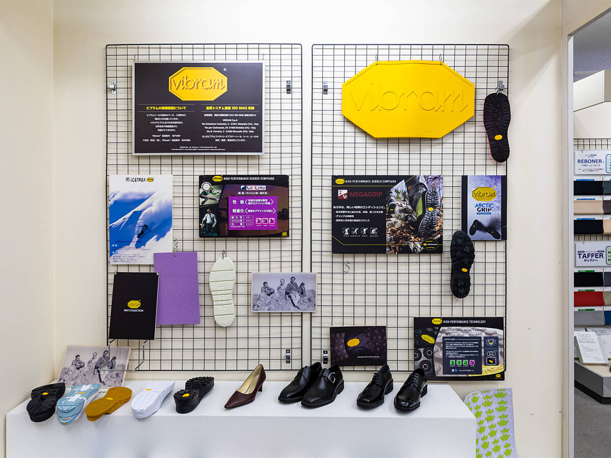 製法や製造コスト、商品となった後の使用環境など、あらゆる側面から最適な素材を判断し、メーカーへ提案するのが同社の方針。機能性素材に関する膨大な知識をもとに、顧客のオーダーを確実にカタチにしていきます。そもそも靴に使われる素材は、商品の意匠に影響を与えるだけでなく、履く人の全体重を支えるもの。そのため、安全性や均一性を保持すると同時に、限られたスペースに必要な機能を装備させなければなりません。それらを実現する高い技術力と提案力が認められ、現在では多方面からの絶対的な信頼を得るに至っています。