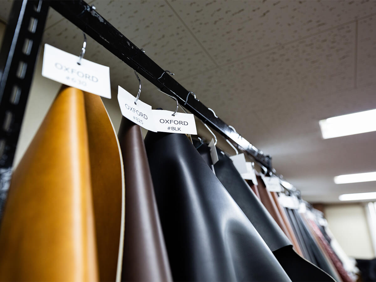 同社が多くのメーカーから選ばれ続けている理由は、ネームバリューだけではありません。常にクライアントが求める理想のさらに一歩先の提案を行う姿勢こそが、他では真似できない強いパートナーシップにつながっています。オーダー通りの革をつくり、迅速に仕入れるのは、もはや当たり前。そのうえで、出来上がる製品に最適な加工などの提案を心がけています。また、ひとつの答えに対して、非常に多くの選択肢を用意している点も同社の強み。用途や予算に合わせた適切なクオリティの革を、適正価格で選べる安心感が、クライアントにおける大きな満足度をうみ出しています。