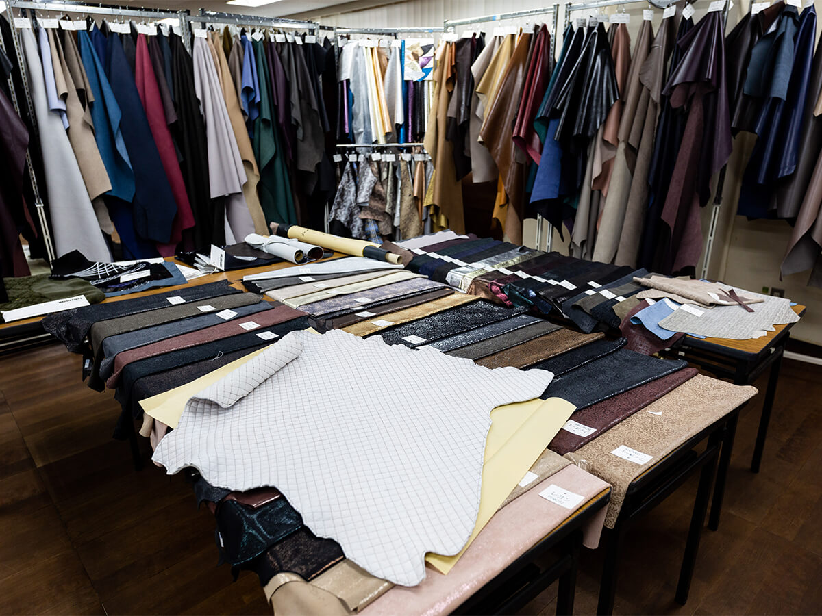業界でも有数の実績を誇る同社ですが、一括で大量の仕入れを行っているわけではありません。その圧倒的な数字は、それぞれの営業担当が、小口の発注でも、クライアントの希望に沿った商品を世界中から探し出したその積み重ねが結果となったもの。また、メーカーとの協議の中で、オリジナルの革をつくり出すことも珍しくありません。取引の量や数が増えても、常に細かいニーズを汲み取り、フレキシブルに対応をしていく。そうしたブランドに頼らない人間力こそが、同社の歴史と伝統を支えています。
