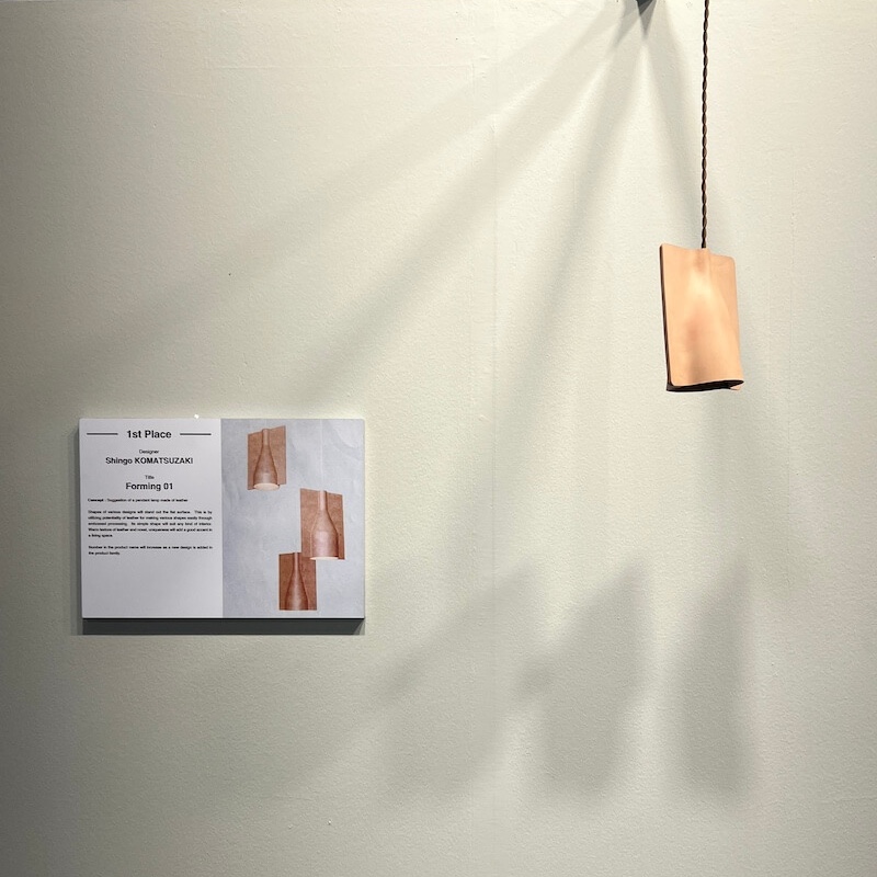 このペンダントランプ(シャンデリア)は、その直線性と洗練されたデザイン(堅牢性とも好対照)で抜きん出ていました。遊び心のある形状、光と影、そしてシンプルでありながらこのようにエレガントに皮革を扱う能力。以上の理由で、この作品を1位に決定しました。