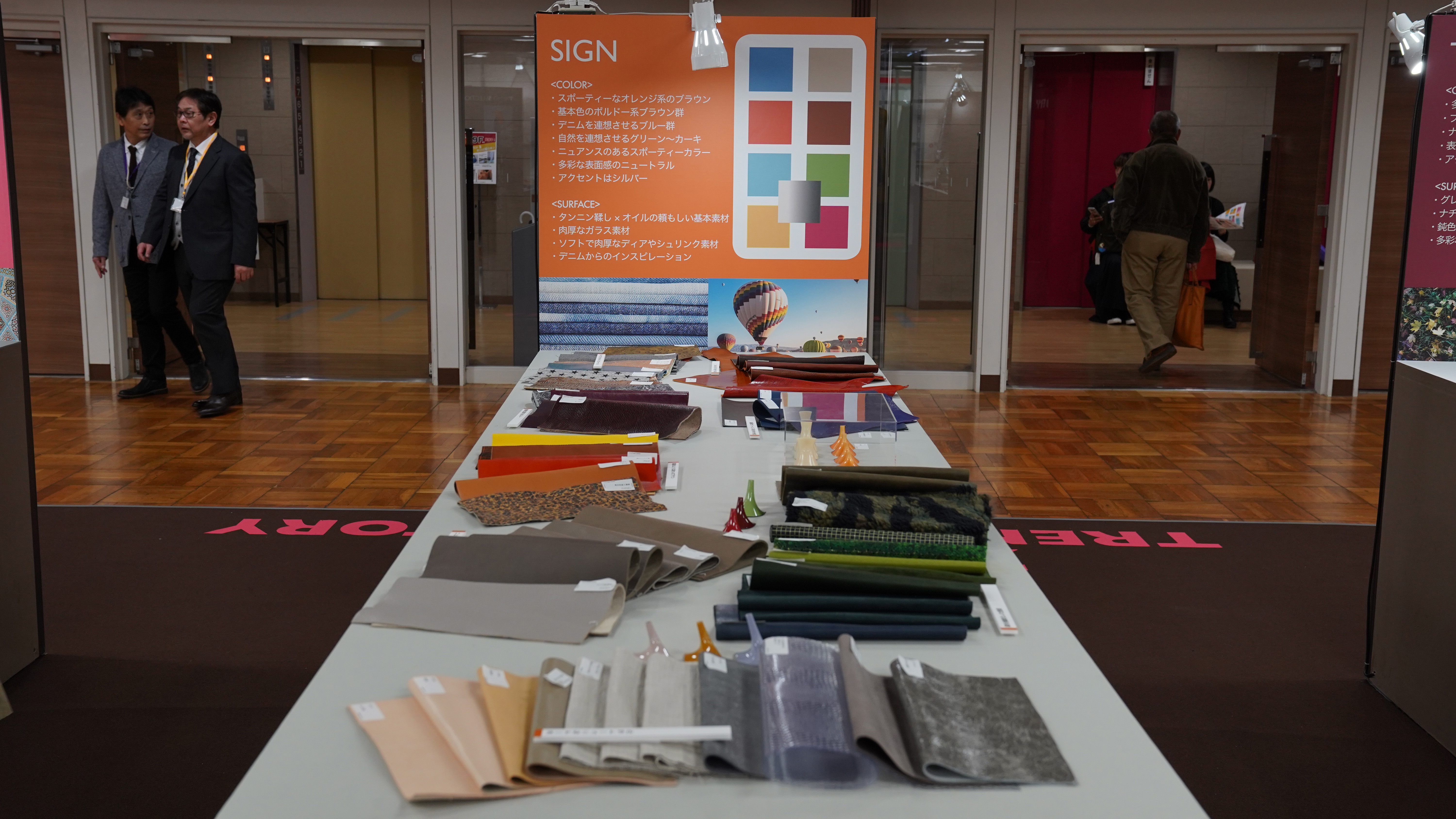 2020年秋冬に向けた素材と副資材のトレンド提案を行うブース。日本の鋭敏な感受性に支えられた色彩と素材。市場を活性化する高感度なインスピレーションを提示しました。